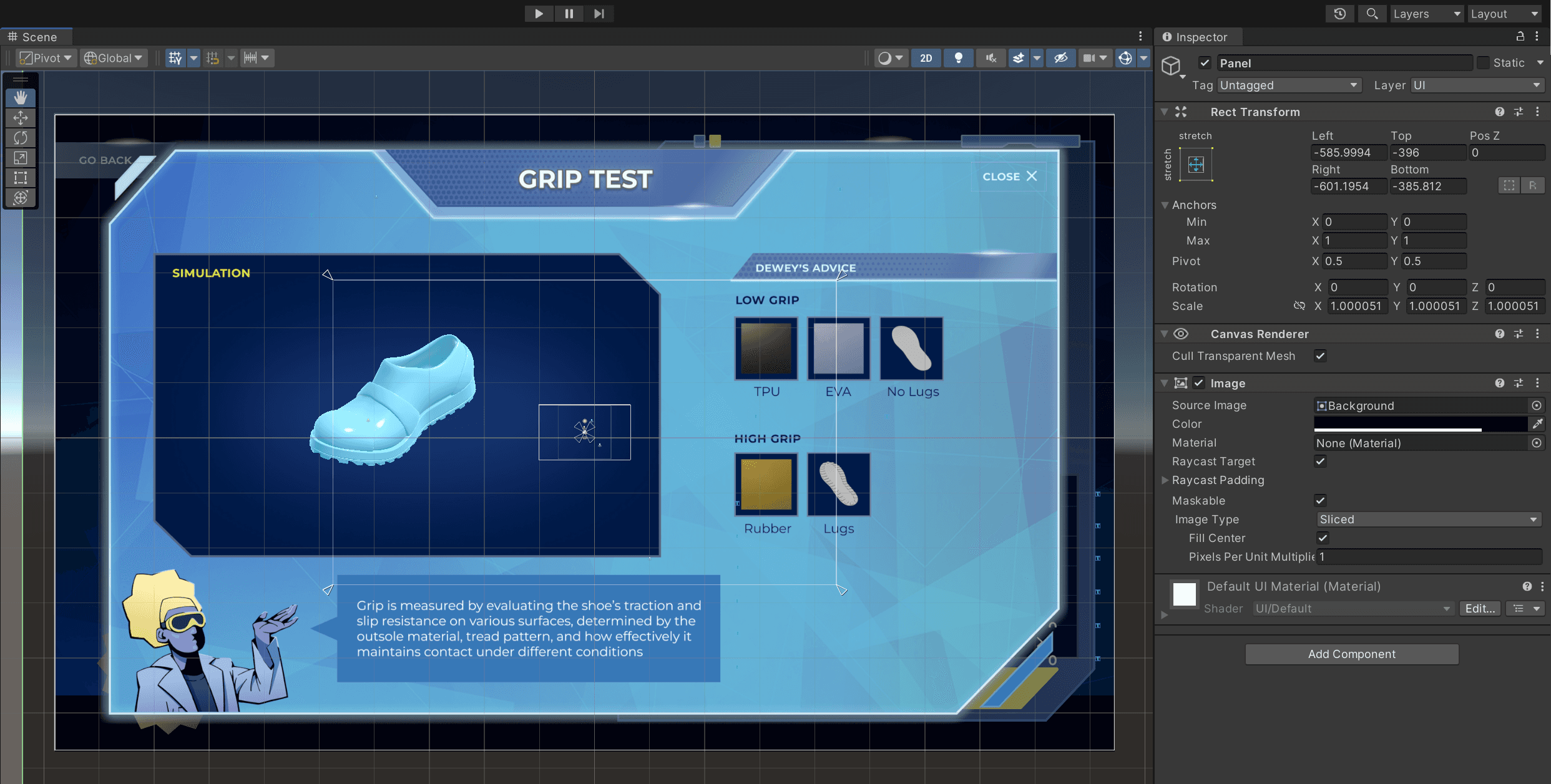 · Implemented interactable UI in Unity